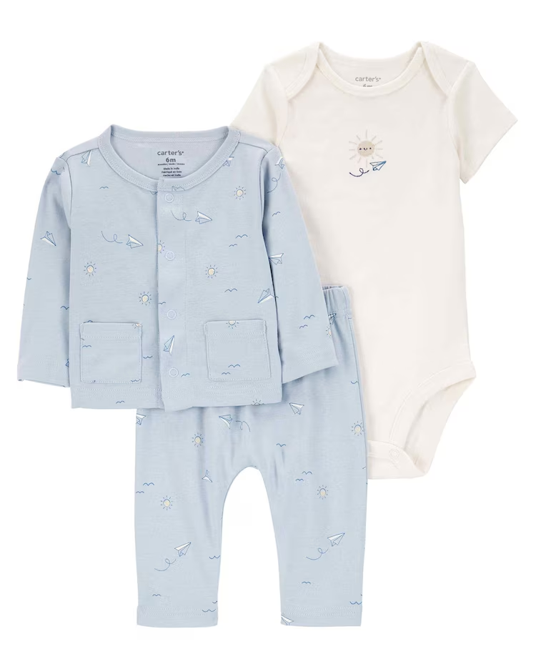 Suas definições de fofura foram atualizadas. O Conjunto longo bebê 3 peças avião de papel e sol multicor | Carter's é perfeito para deixar seu baby ainda mais lindinho. Feito de algodão, o conjunto conta com um body com estampa de sol, abotoamento entrepernas, uma calça com cós de elástico e uma camisa com dois bolsos frontais. Um charminho para seu baby. Aproveite!