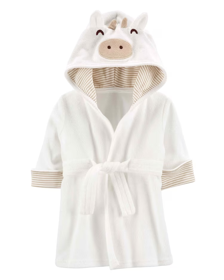 Ideal para cuidar de seu baby após o banho, o Roupão bebê atoalhado de bichinho branco | Carter's alia conforto e fofura na medida certa. O roupão conta com tecido atoalhado, faixa de amarração e região interna listrada. Seu charminho fica por conta de seu capuz de bichinho. Aproveite!