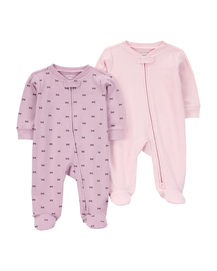 O Kit macacão bebê 2 peças com pezinho canelado laço multicor | Carter's confeccionado em algodão macio e poliéster, conta com zíper frontal que permite a abertura inversa facilitando na hora da troca de fraldas, mangas longas, pezinho fechado e martingale com botão de pressão que protege a bebê do zíper. Ideal para todos os momentos, o modelo esbanja fofura e delicadeza, invista, sua bebê merece!