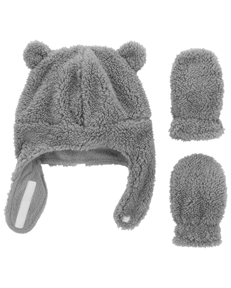 rfeito para os dias mais frios, o Kit touca bebê e luva peluciado cinza | Carter's foi produzido pensando nos cuidados com o bebê para não pegar friagem. Confeccionado em tecido peluciado a touca conta com aplicação de orelhinhas e possui fecho nas pontas. Ideal para manter a cabeça do bebê aquecida, principalmente nos primeiros meses de vida.