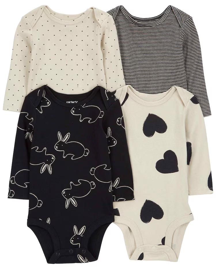 Deixe sua baby ainda mais lindinha com o Kit body bebê 4 peças manga longa coelhos e coração multicor | Carter's. Feito de algodão, o kit é perfeito para mamães e papais de primeira viagem, possui abotoamento entrepernas, ombros transpassados (cava americana), auxiliando ao tirar e colocar a peça em sua bebê e um charme. Aposte!