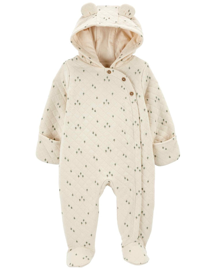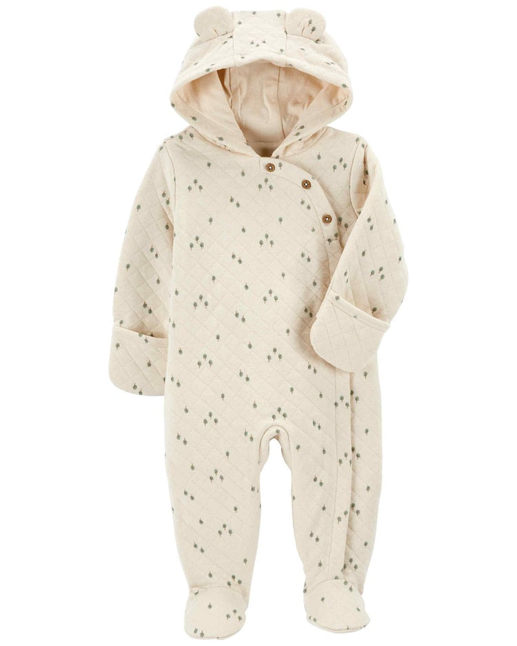 Os primeiros momentos com o bebê são únicos e a confiança dele ter o máximo de conforto e ficar ainda mais fofinho você encontra aqui com o Macacão bebê matelassê com capuz árvores orelhinha bege | Carter's. O macacão vem com capuz, toque macio e estampa de árvores. Assim como ele, você terá também uma ótima noite de sono.