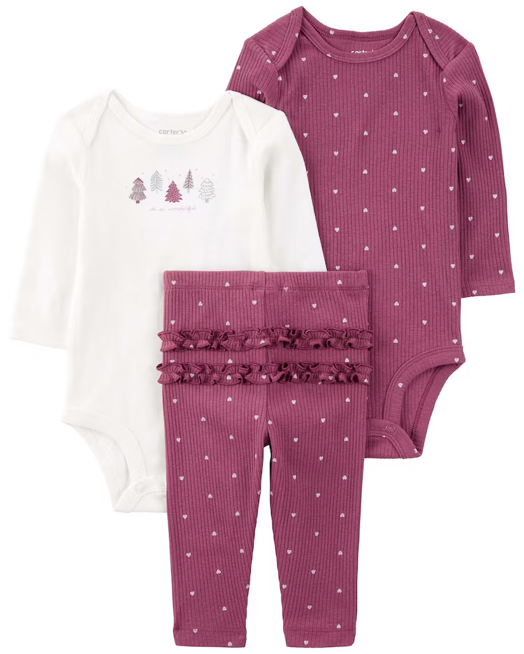 Perfeito para aquecer os pequenos, o Conjunto longo bebê 3 peças corações e árvores multicor | Carter's traz o conforto e o aconchego tão necessários. Feito de algodão, o conjunto conta com um body de manga curta e longa, é super estilosa por conta de sua estampa de corações, acompanhada por uma calça com cós de elástico. Aproveite!