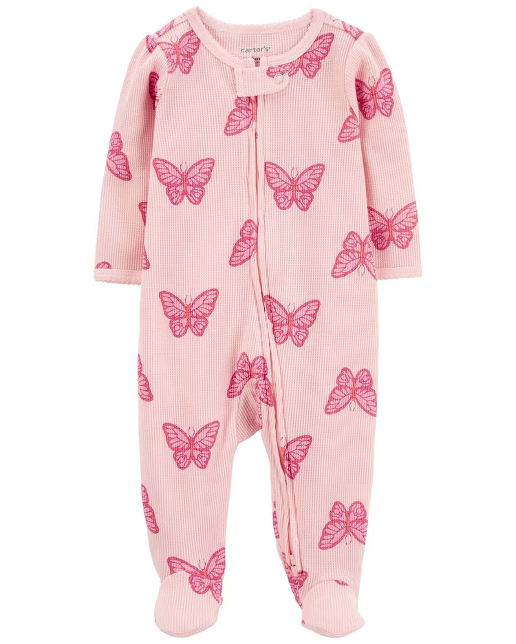 O Macacão bebê canelado borboletas rosa | Carter's é confeccionado em material canelado, macio e aconchegante, com fechamento por zíper inverso, mangas longas, martingale, gola redonda, pezinhos e estampa de borboletas. O modelinho esbanja fofura, além de ser ideal para todos os momentos. Invista, o seu baby merece!